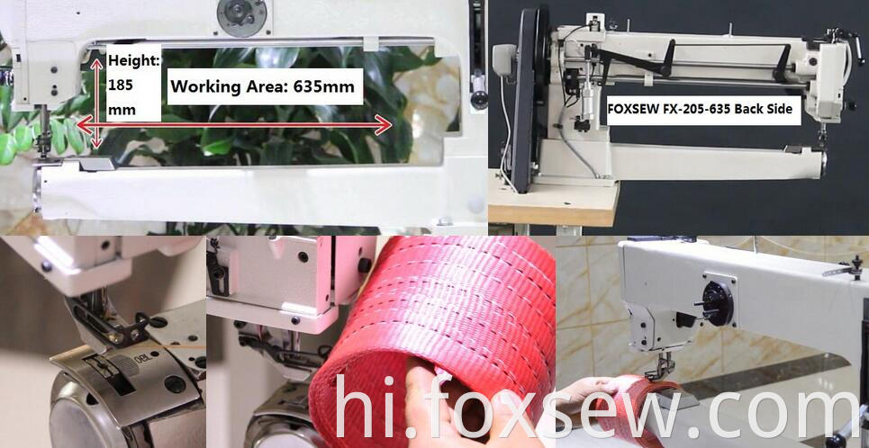 प्रेसर पैर की लिफ्ट 20 मिमी तक है, अतिरिक्त भारी वजन वाली सामग्री को सिलाई करने के लिए उपयुक्त है, प्रेसर पैर की आवाजाही असीम रूप से हो सकती है। सिलाई क्षेत्र 635 मिमी हो सकता है, जो बड़े, उच्च और सिलेंडर उत्पादों के लिए उपयुक्त है।